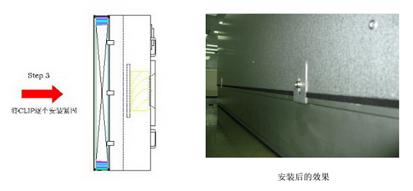 FFU安裝指導(dǎo)指南步驟3:然后將CLIP 勾住高效過(guò)濾器的凹槽,并逐一安裝固定,安裝完畢,檢查FFU 箱體與過(guò)濾器結(jié)合是否均勻,緊密。